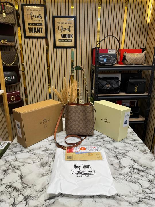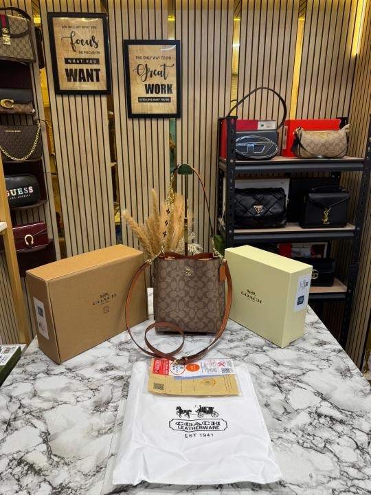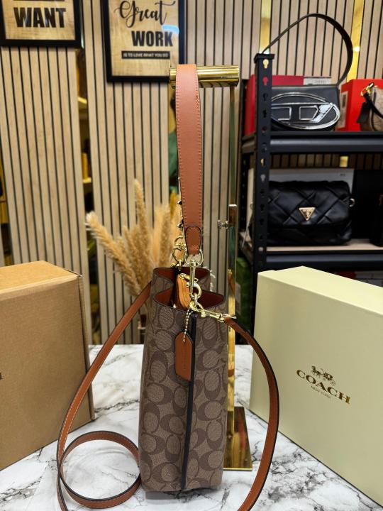Coac_h Mollie Premium Quality Bucket Bag In Signature Canvas With Og Double Box Dust Bag (Coffee) (F-62699)
