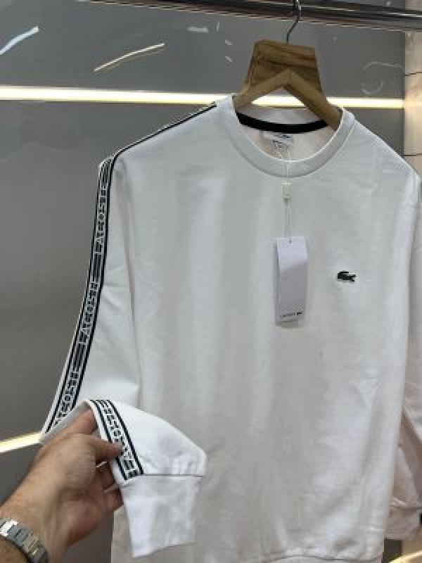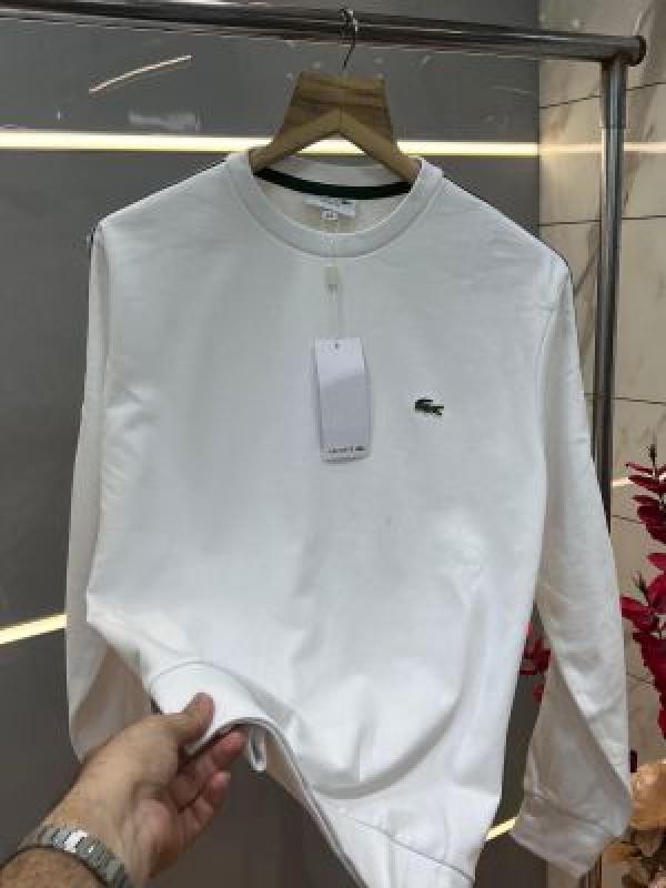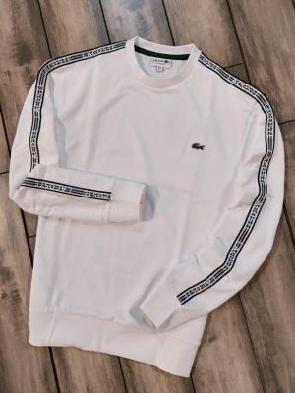 Lacost e White Premium Imported Interlock Cotton 380 GSM Shoulder Strip and Embroidered Logo Sweatshirt 3392