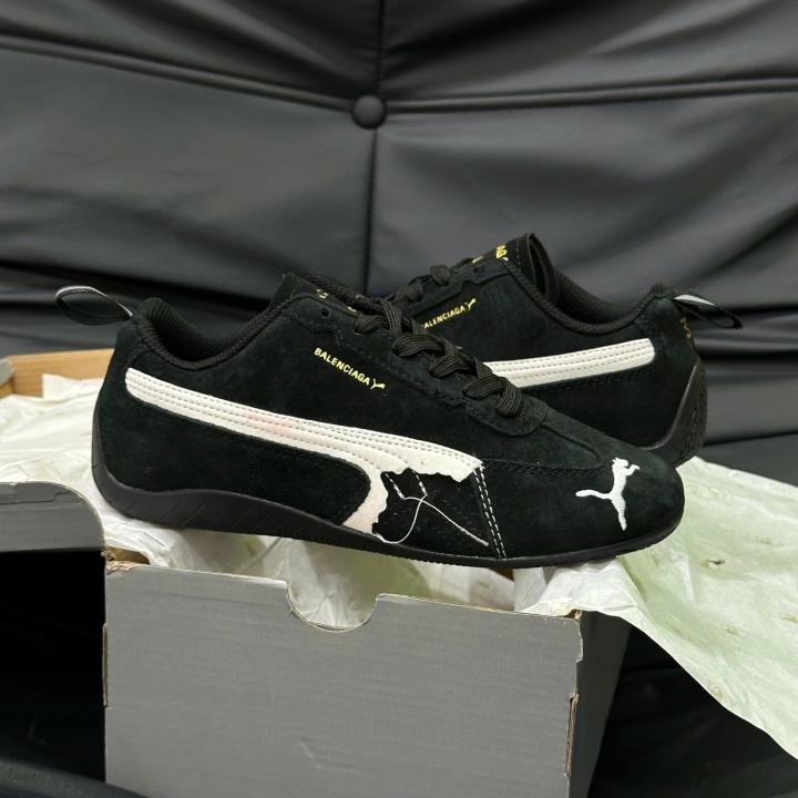 Pum_aa Balenciag_aa Speedcat Suede Distressed Black White 522